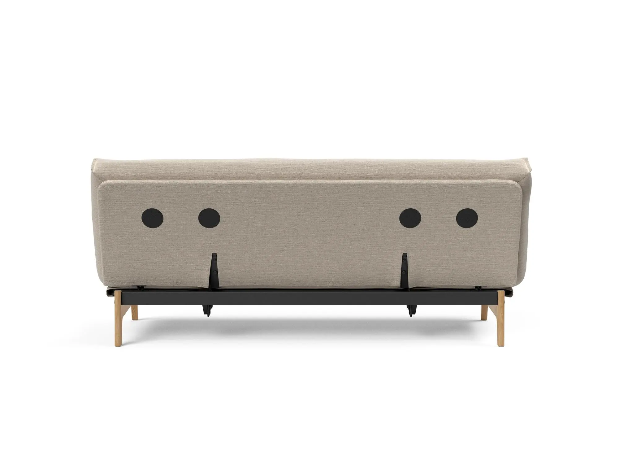 Et alsidigt sovesofadesign med en nordisk attitude forstærket af lakerede egetræsben og høj funktionalitet, der er udformet til lang levetid.